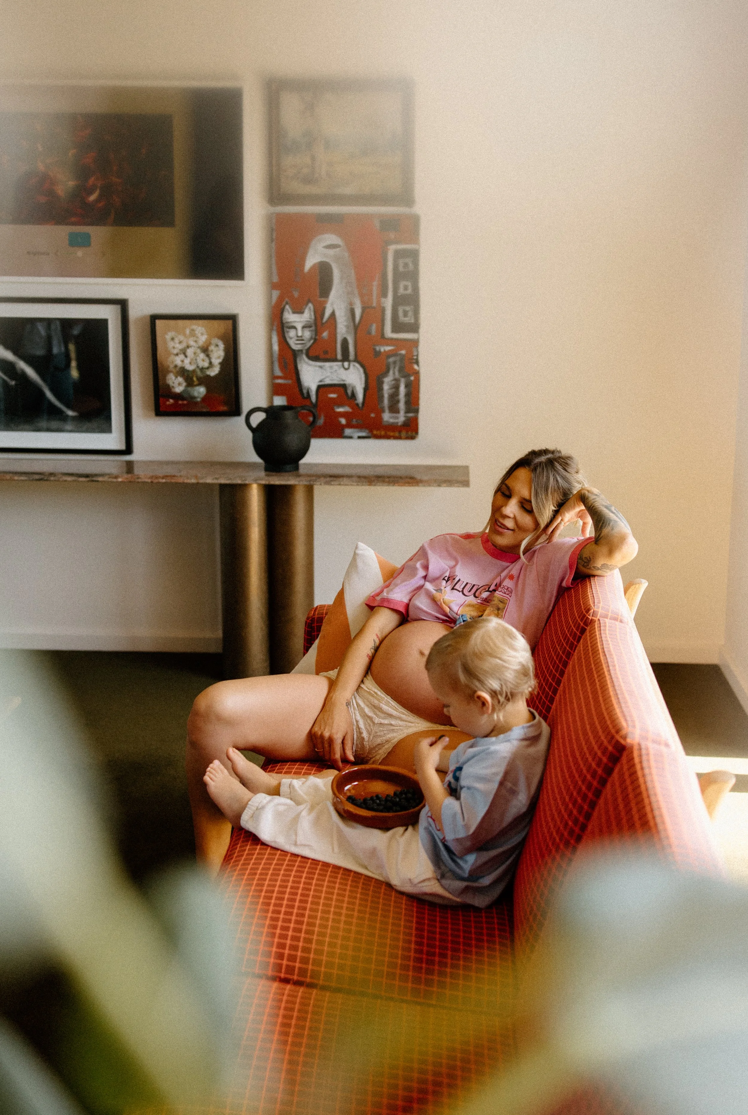 Maternity sessions are all about slowing down and soaking it all in before your little one arrives. Think cuddles, laughs, and a chance to celebrate this special season together. The sweet spot is usually around 32–36 weeks your bump is glowing, and you’re still feeling good. We can wander through flowers, splash along the beach, or keep it cozy at home whatever feels most you.